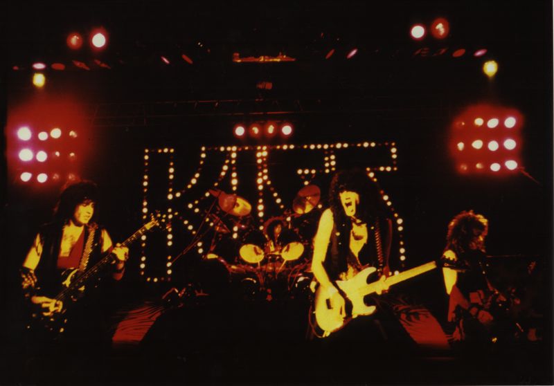 30 October, 1984. The Dusseldorf Phillipshalle (in Germany, natch). The hottest band in the world - KISS!! Man, I love this group. This was only my second show. By now I've seen 'em around a dozen times. Using stealth skills I picked up from Team Banzai, I managed to get my little automagic Ricoh into the concert. Actually got 2 or 3 decent pics. Bon Jovi opened but no one much cared. The next year, "Slippery When Wet" put them on top. Go figure. |