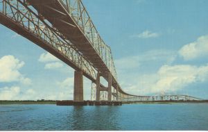 Another postcard 'cause I don't have a good picture myself - the Cooper River bridges in Charleston, SC. The older one on the left you may remember from the beginning of "The Philadelphia Experiment" or the end of "Die Hard: With A Vengeance." |