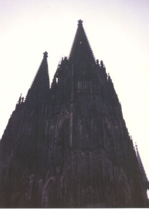The cathedral in Cologne (or, more properly, Köln) Germany. A lousy shot but okay for my little automagic camera. Wish I had a shot from the top of the spires. Don't take many pictures and most of what I have are slides and I have no scanner for those. Köln also had this awesome record store called Saturn. I could've lived there. |